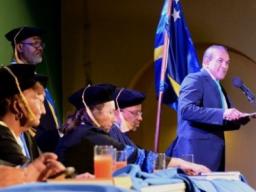 De toespraak van rector magnificus Valdemar Marcha stond onder meer in het teken van de aanstelling van een nieuwe professor, Sousan Urroz-Korori. Zij neemt de ‘Chair of International Financial Management in a Global Economy’, bij ICUC op zich. “Aan de hand van ‘zelfevaluaties’, heeft ICUC de programma’s gewijzigd. Zo is er een doctoraal programma geïntroduceerd in samenwerking met de Vrije Universiteit van Amsterdam”, aldus Marcha in zijn toespraak. “Daarom mag de privé-universiteit, die zich als de eerste universiteit op Curaçao profileert als zijnde een instelling die op drie verschillende academische niveaus – Bachelor, Master en nu ook doctoraal – deze studies aanbieden.”