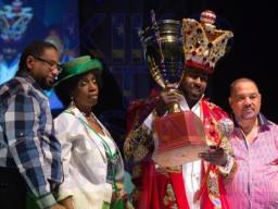 Een uitzinnige Amos Balentin, nadat hij zijn kroon en mantel in ontvangst heeft genomen. | Foto Edsel Sambo