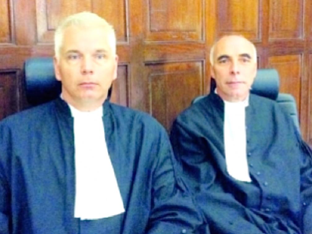 Officieren van Justitie mr. Mul (links) en mr. Van der Werf (rechts) zijn speciaal voor de zaak Bientu uit Nederland gekomen