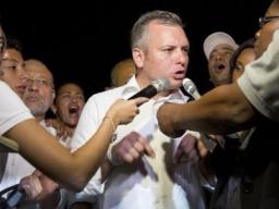 Schotte en Van der Dijs bij het binnengaan van het Stadhuis | Persbureau Curacao