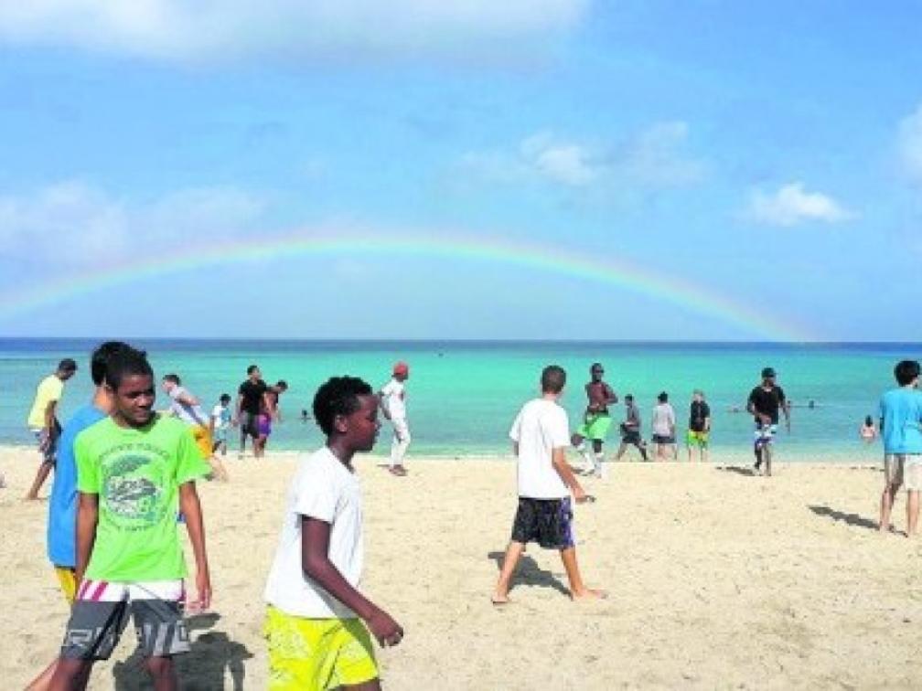 De 250 leerlingen van Marnix College die een schooluitje hadden op het strand van Daaibooi werden extra getrakteerd op een wonder der natuur. Terwijl ze aan het sporten waren verscheen aan de horizon plotseling een regenboog. Misschien een teken om het komend schooljaar ook kleurig te zien.