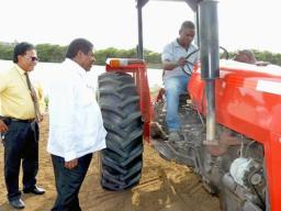 Dat gebeuren vond plaats bij de dam op het ABV-terrein, waar op de achtergrond een paar flamingo’s en andere watervogels waren neergestreken. De vertegenwoordigers van de drie landbouwcoöperaties staken hun erkentelijkheid niet onder stoelen of banken. De overdracht werd officieel getekend, per landsbesluit. Het kunnen beschikken over werkende tractoren betekent dat er weer regelmatig geploegd kan worden, zonder dat het planten vertraging oploopt. Die periodes lijken steeds korter te worden. Voor het tweede achtereenvolgende jaar is er sprake van droogte. En als het dan gaat regenen, loop je het risico dat de oogst die bijna rijp is alsnog verloren gaat.