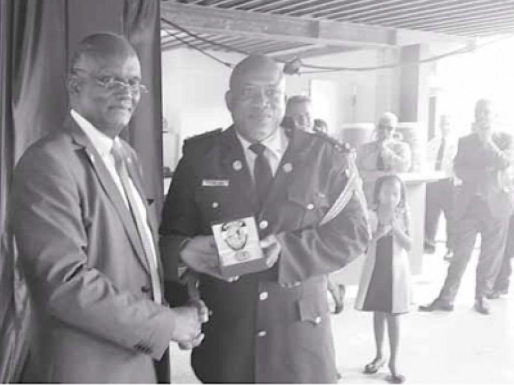 Op de foto commissaris Carl John met minister van Justitie Dennis Richardson