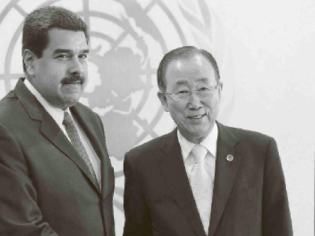President Nicolás Maduro (l) bij zijn ontmoeting met VN-secretaris-generaal Ban Ki-moon | Fotp ANP