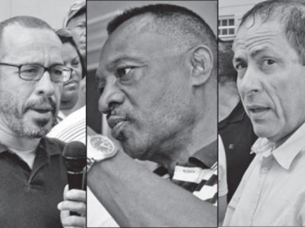 V.l.n.r. advocaten Eldon 'Peppie' Sulvaran, Anthony Eustatius en Chester Peterson (ook wel 'KFO advocaten' genoemd).