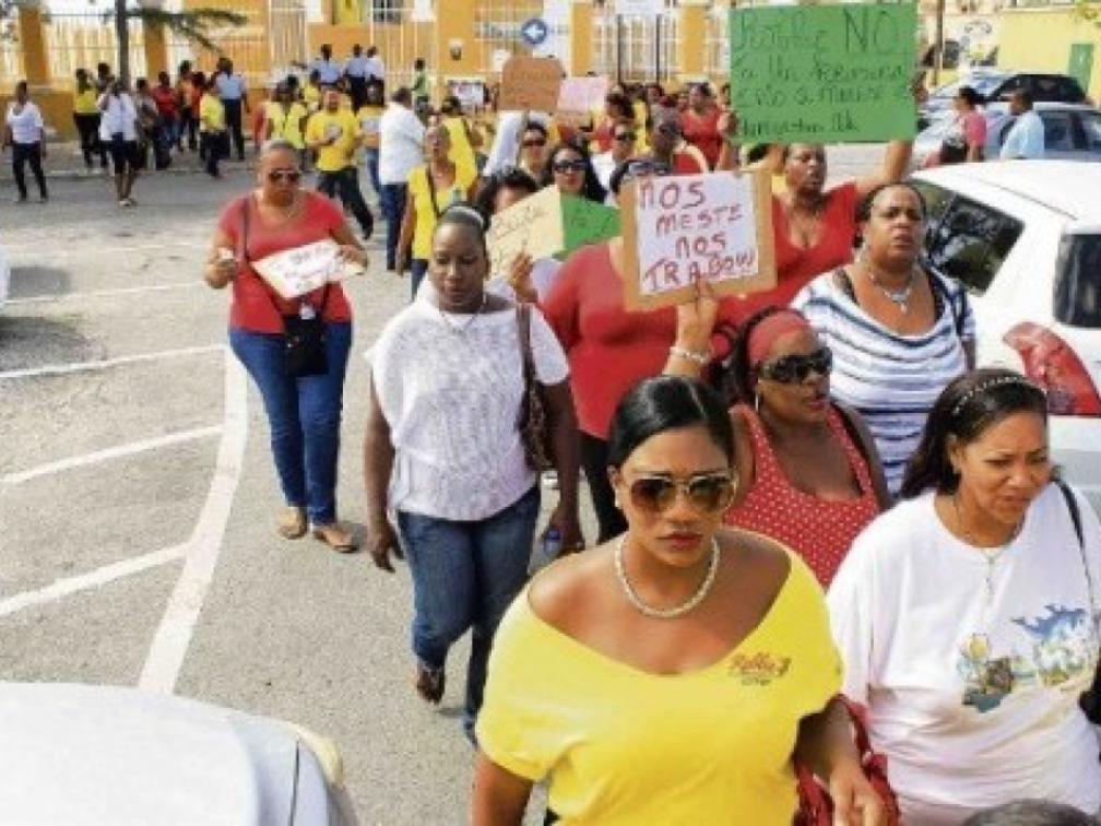 WILLEMSTAD — De medewerkers van Robbie’s Lottery begaven zich vanochtend naar het kantoor van het Openbaar Ministerie De Tempel in Punda, om te protesteren tegen de handelingen van het OM jegens hun werkgever Robertico ‘Robbie’ dos Santos.