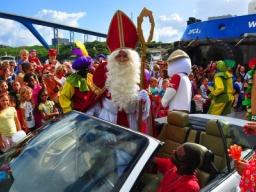 De Sint en zijn bontgekleurde Pieten trokken daarna over de Emmabrug richting Punda, terwijl ze naar de duizenden (soms verklede) kinderen op het Brionplein zwaaiden.