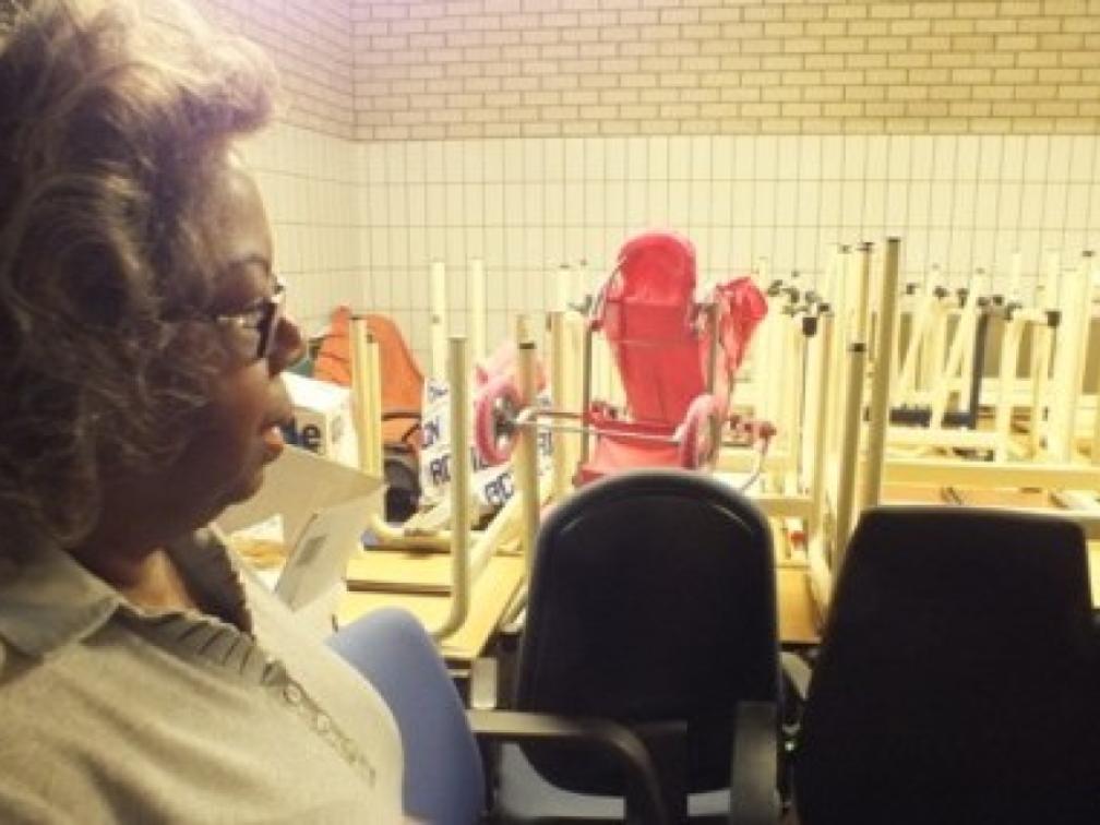 Ruth Groenewoud bij het schoolmeubilair - Foto | Jamila Baaziz
