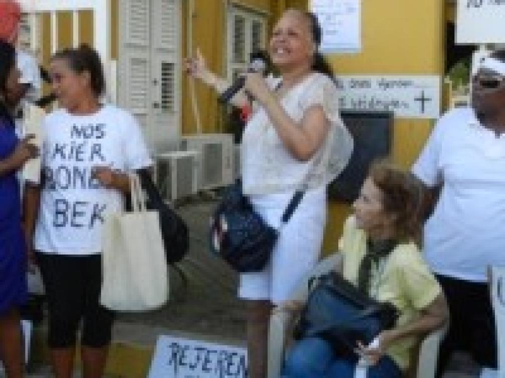 KRALENDIJK – De protestgroep Nos Ke Boneiru Bèk blijft manifesteren vóór een staatkundige referendum bij het gebouw van het bestuurscollege. Gezaghebber Edison Rijna tolereert de situatie om escalatie te voorkomen. “De gemoederen en emoties waren dermate heftig, dat dwang niet tot beter resultaat leidt. Het algemeen belang, veiligheid en openbare orde prevaleert. Ik kies nu voor dialoog.”