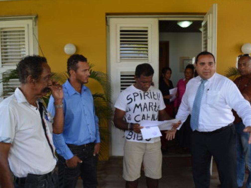 Gezaghebber Edison Rijna gaf de brief aan James Finies | foto Extra Bonaire