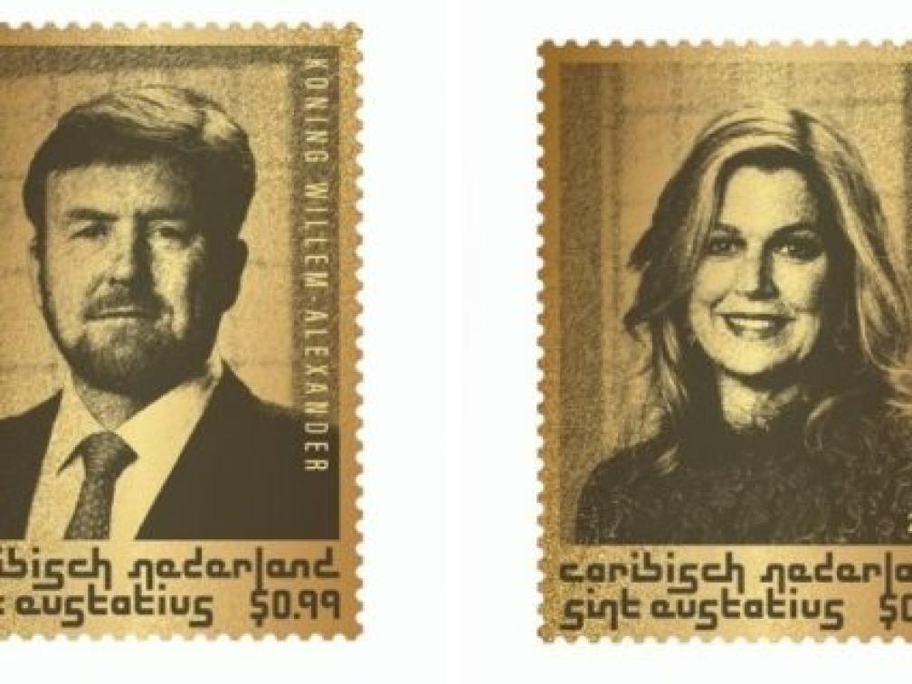Kralendijk – Ter gelegenheid van 10 jaar 10-10-’10 verschijnt er een 24 karaats gouden postzegel van Willem-Alexander met baard en één van Maxima.
