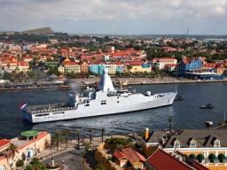 De ceremoniële binnenkomst van het meest moderne schip van de marine in Willemstad, benadrukt deze viering nogmaals”