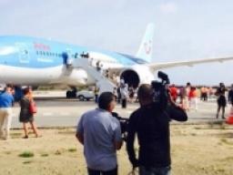 Enkele gelukkige passagiers die op vakantie gingen naar een van de eilanden en veel journalisten mochten de eerste Dreamliner op Caribisch grondgebied verwelkomen.
