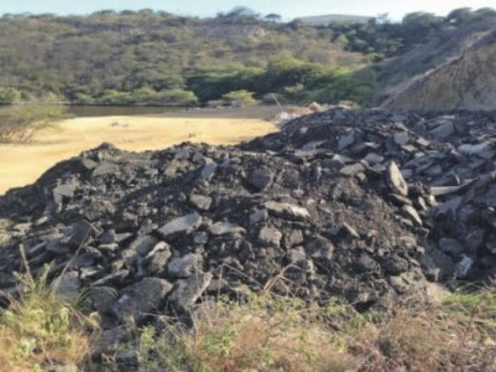 Bij Bati Paña, aan de westkant van het Schottegat, onder aan de Julianabrug, liggen grote bergen met oude asfaltbrokken. Dit is voorbijgangers, voornamelijk mountainbikers, opgevallen die er erg verontwaardigd over zijn. Het is vooralsnog niet duidelijk waar het asfaltpuin vandaan komt, wie het er heeft gedumpt en of het tijdelijke opslag met toestemming betreft of dat het illegaal is gestort. FOTO AD