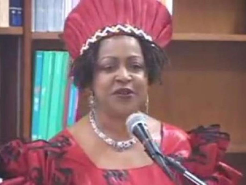 Verene Shepherd tijdens een lezing in de Nationale Bibliotheek van Jamaica - Foto | Youtube