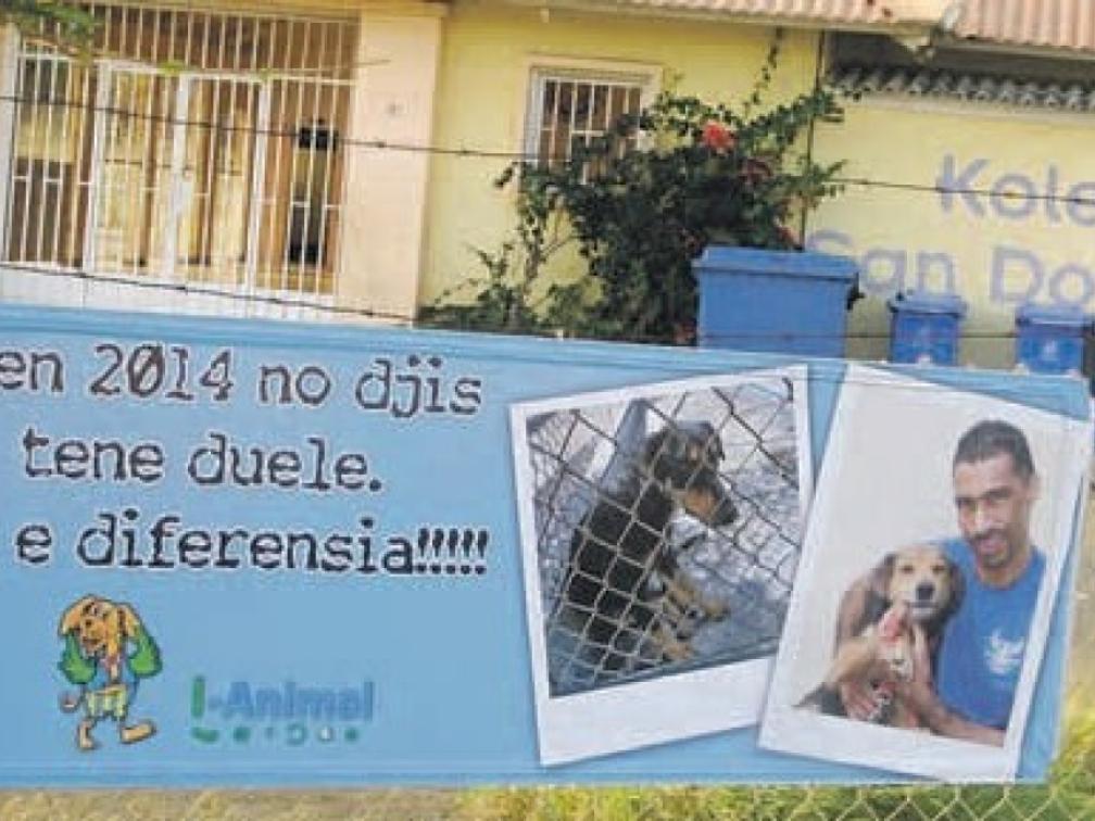 Willemstad - De eerste bewustwordingsbillboards van stichting I-Animal voor het jaar 2014 hangen al op de bekende plaatsen zoals bij scholen te Fuik, Montagne, Seru Fortunaweg en Soto, bij Marchena Hardware te Santa Rosa en in Marchena, Marshe te Barber en het Christoffelpark, het dierenasiel en naast Nos Welita te Kirindongo Abou.