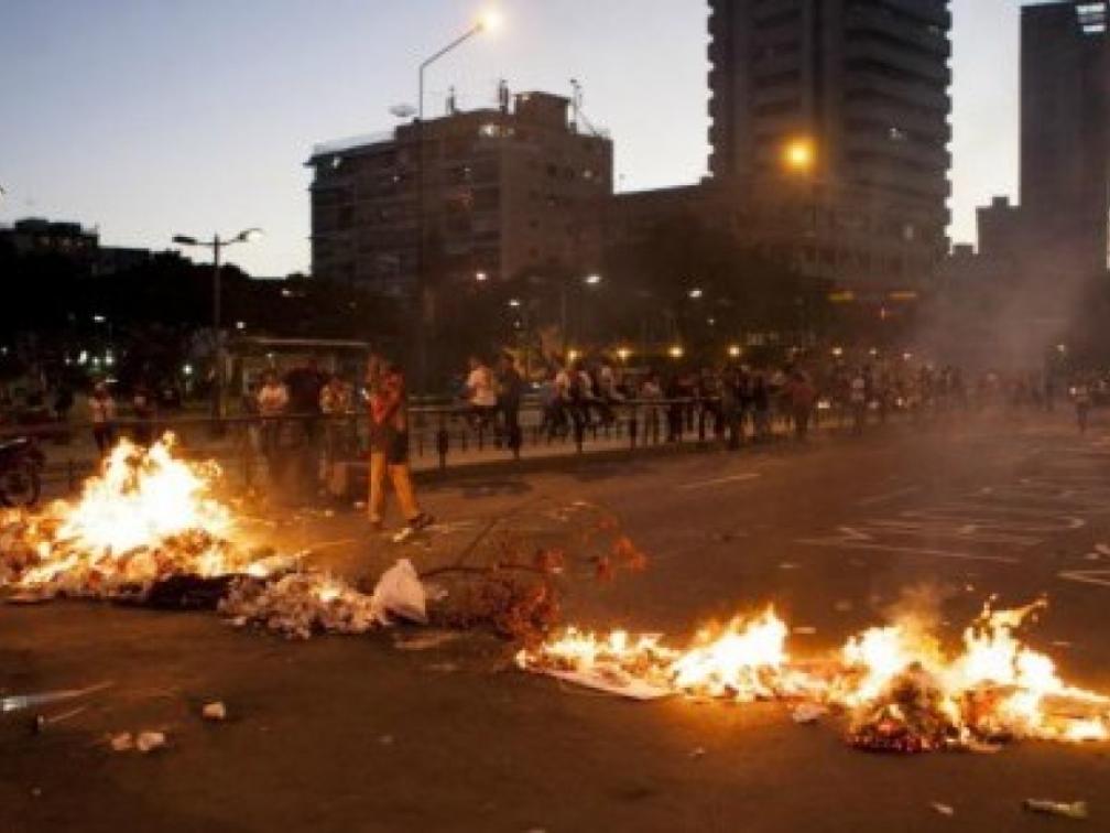 Brandende barricades in de hoofdstad Caracas op vrijdag 21 februari