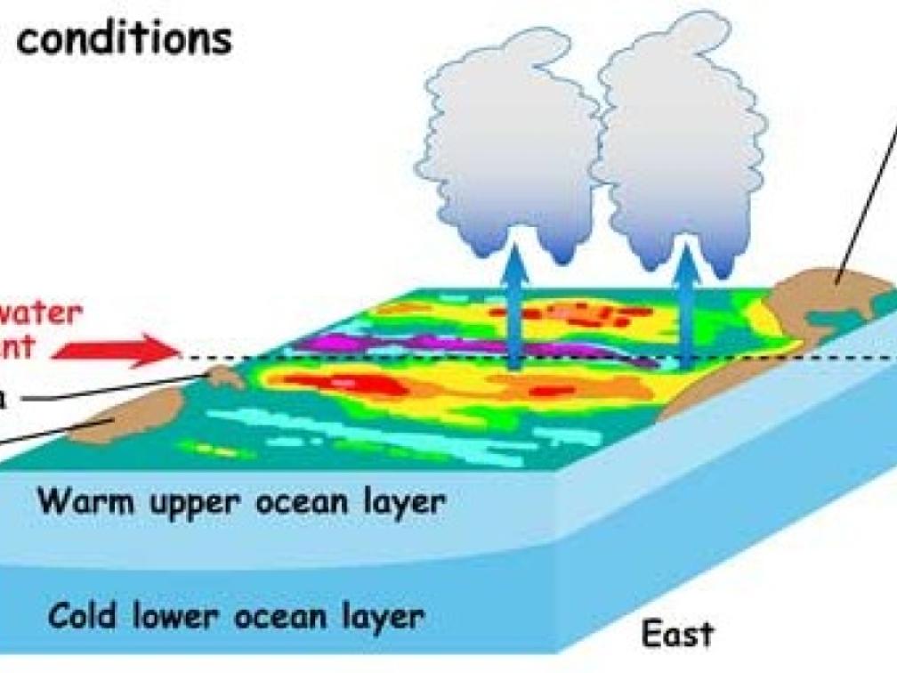 De verhoogde temperatuur van het zeewater veroorzaakt meer wind in de regio. Daardoor ontstaan er minder wolken en buien.