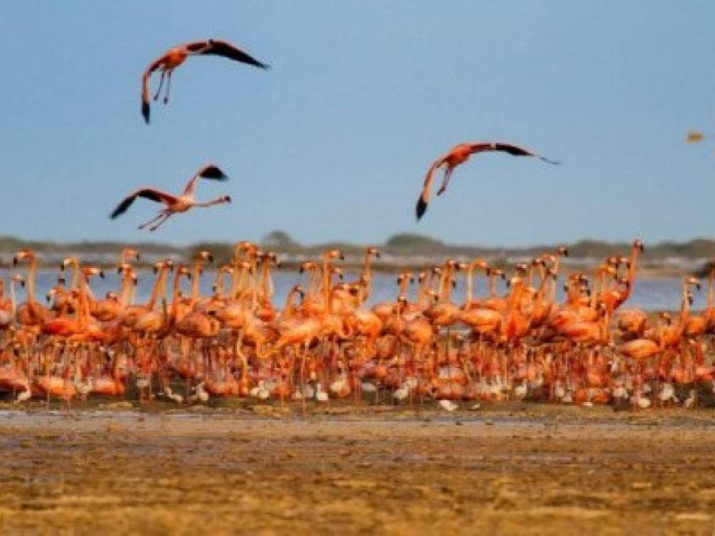 Er is een nieuwe generatie flamingo’s geboren op Bonaire. De pasgeborenen lopen al scharrelend tussen hun ouders door en rond de nesten van de nog broedende roodroze vogels.