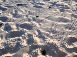 De meeste nesten komen uit tussen vier uur ’s middags en zeven uur ’s avonds. Het kan wel eens gebeuren dat een schilpaddennest ’s nachts uitkomt. Om die padjes te beschermen bouwen vrijwilligers van Turtugaruba een baken om de nesten heen. Schildpadden kruipen instinctief namelijk naar het licht toe, legt Van der Wal uit. Bij daglicht kruipen ze automatisch richting de zee, maar als ze uitkomen wanneer het donker is, gaat het wel eens mis. “Dan lopen ze richting de verlichte hotels. Het komt voor dat we de volgende ochtend schildpadjes terugvinden in een hotel. Of erger nog: overreden door een auto.”