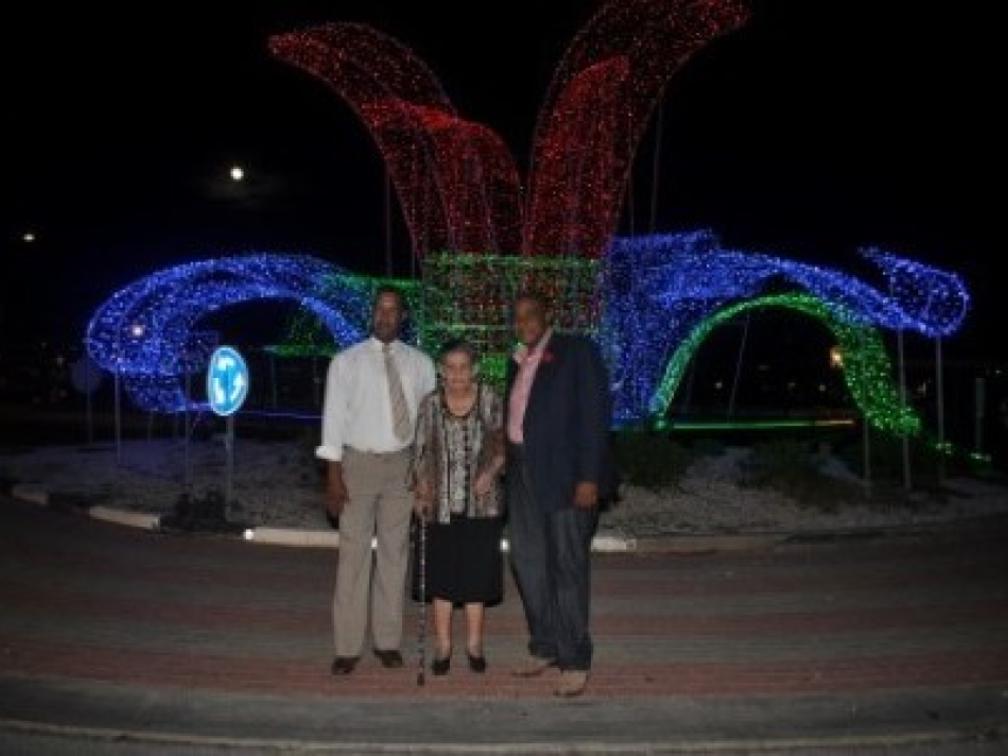 'Laten we het stadscentrum in het licht zetten', onder dat motto werd gisteren de feestverlichting van Aqualectra bij het Riffort ontstoken door minister Earl Balborda (PNP) van Verkeer, Vervoer en Ruimtelijke Planning. Speciale gast was Lucinda da Costa Gomez, de weduwe van staatsman en oud-premier Doktoor Moises da Costa Gomez en zelf ook korte tijd premier. Zij zou eigenlijk vorig jaar de lichten ontsteken, maar dat kon niet doorgaan. Daarom werd zij als speciale gast dit jaar uitgenodigd.