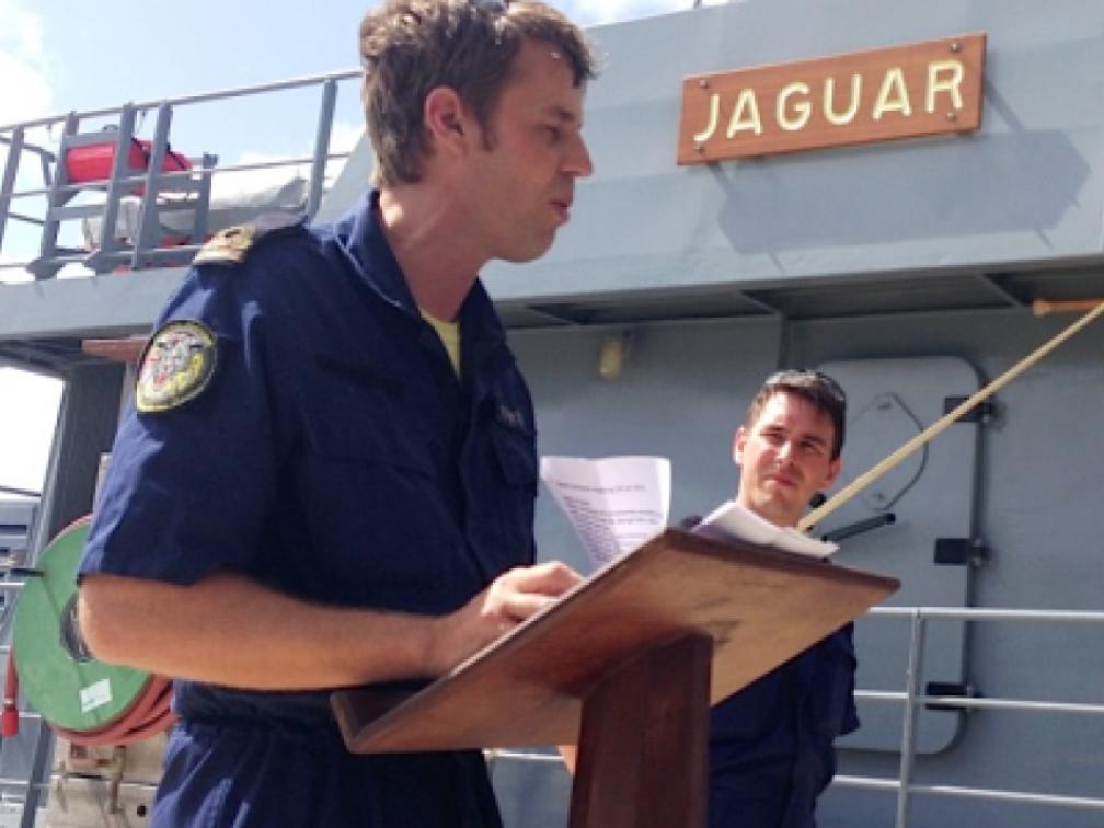 Met gemengde gevoelens nam hij afscheid van het schip en haar bemanning, maar hij was er van overtuigd dat de nieuwe gezagvoerder op de volledige steun van de bemanning van de Jaguar kan rekenen.