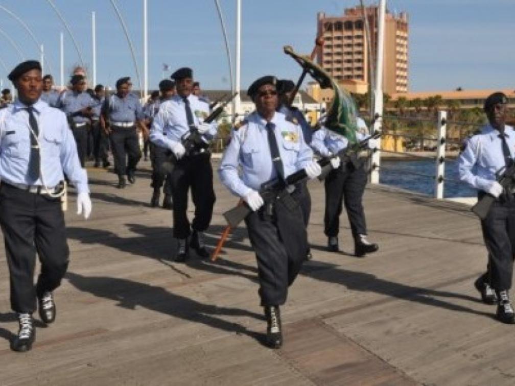 Het Vrijwilligers Korps Curaçao (KPC) marcheerde zaterdag door de straten van Willemstad. Toeristen moesten even wijken van de Pontjesbrug om de stoet, die met de mars eveneens haar 86-jarig bestaan vierde, door te laten.