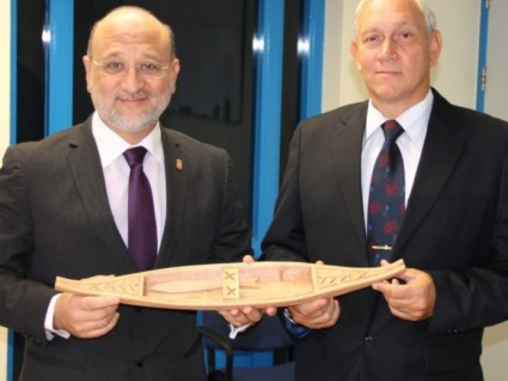 CURAÇAO – Minister Nasser el Hakim (Economische Ontwikkeling) en de consul-generaal van Suriname, Delano Braam hebben met elkaar om tafel gezeten om de handelsbanden aan te trekken tussen Curaçao en Suriname. Volgens Hakim willen de twee landen een maritieme relatie creëren.