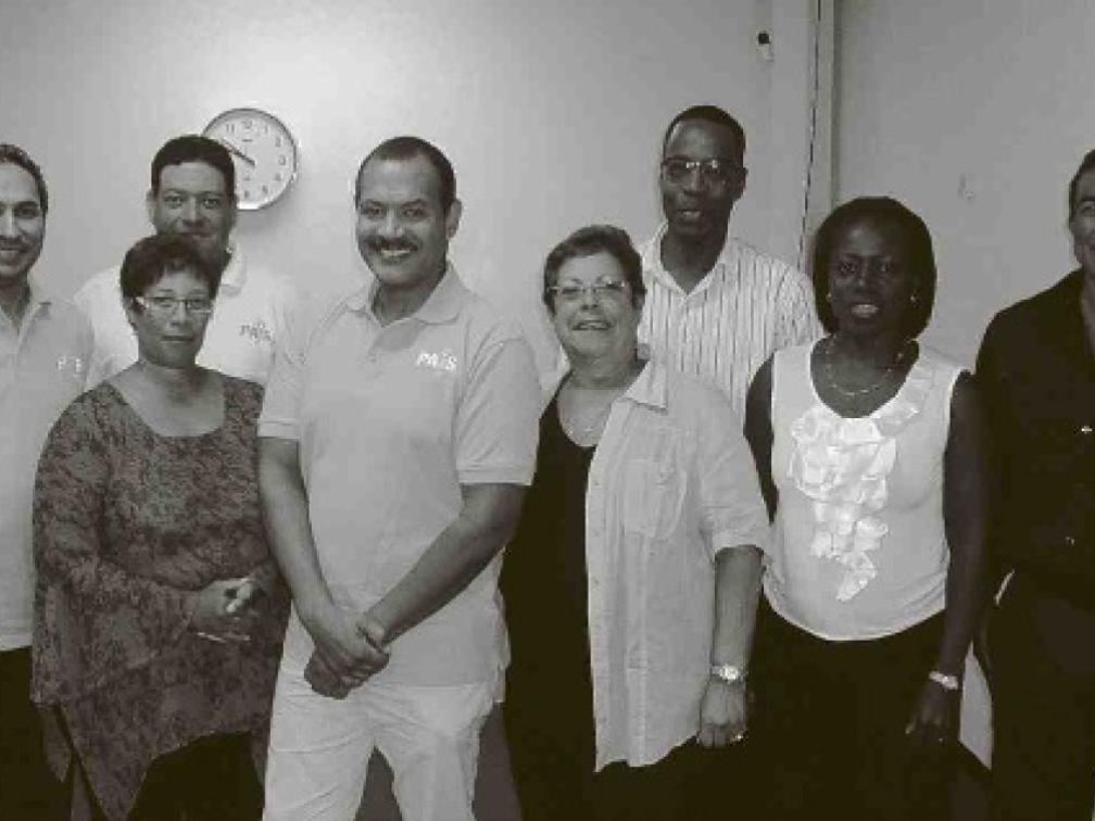 Op de foto van links naar rechts de bestuursleden Michael Samson en Cynthia Devere, partijleider Alex Rosaria, Pais-voorzitter Mike Franco, de bestuursleden Laureen Schenk, Andre Curiel en Marilyn Moses en partijsecretaris Stanley Palm. Niet op de foto penningmeester Don Hernandez.