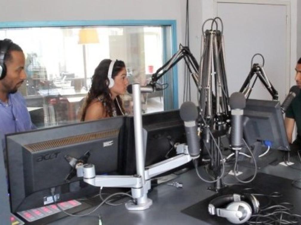 Programmamaker Fardy Lodowica (links) en presentatoren Patricia Gruber en Ricky Martinus gaan elke zondag de studio in om zo veel mogelijk Antilliaanse jongeren te bereiken met hun actualiteitenprogramma | Foto: John Samson