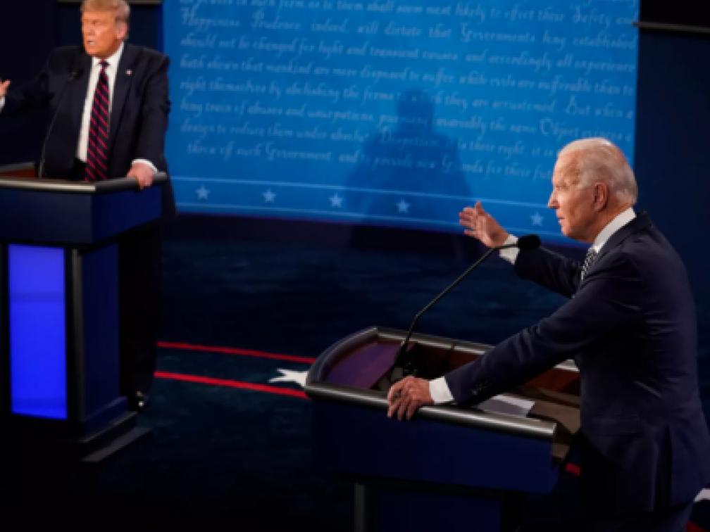 Verkiezingen VS President Trump en voormalig vicepresident Joe Biden stonden voor het eerst tegenover elkaar in de aanloop naar de presidentsverkiezingen van november. Het debat ontaardde in een schreeuwpartij.