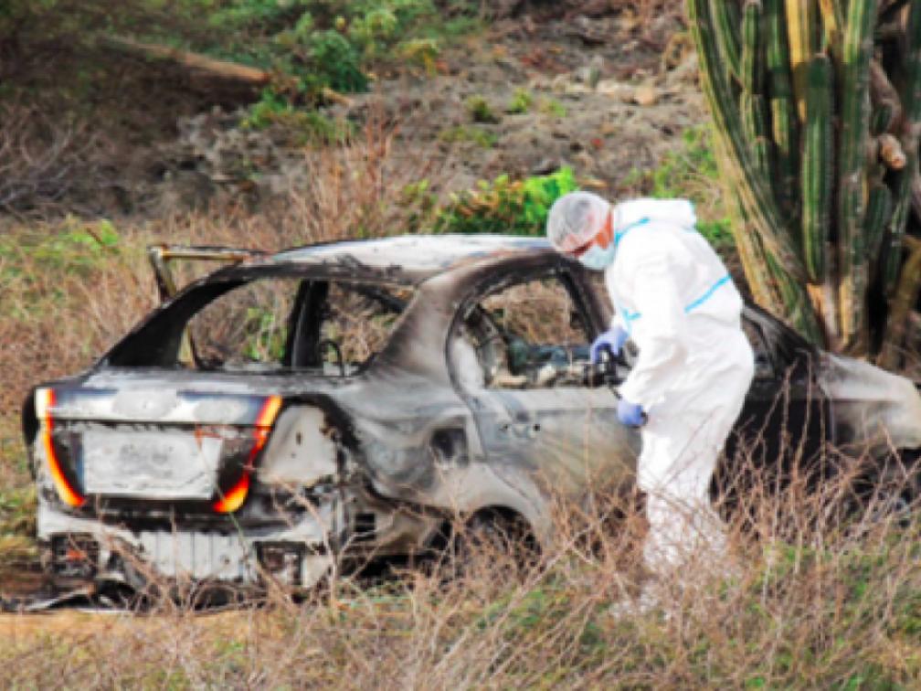 In een auto in de omgeving van Sabana Piedra Krus werd toentertijd, 24 januari vorig jaar, een verkoold lijk aangetroffen | FOTO EDSON PIETERSZ