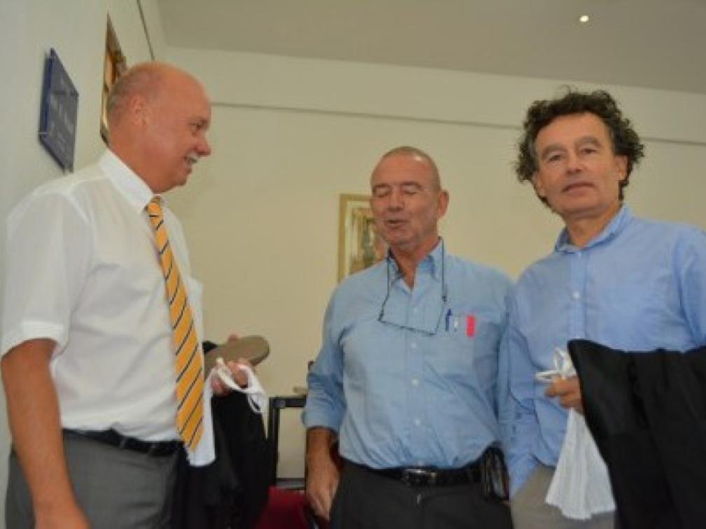 Officieren van justitie Hambeukers en Rammeloo. Midden: advocaat Wesselius | foto Bòi Antoin