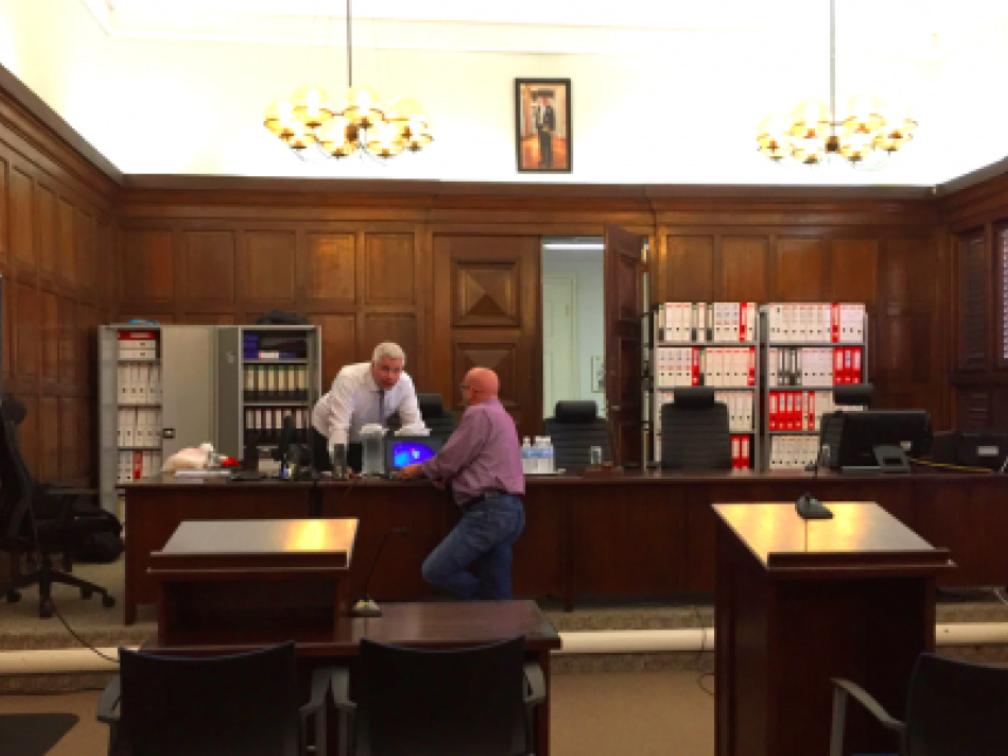 De Bientu zaak met rechts achter de 40 ordners | Foto: Persbureau Curacao
