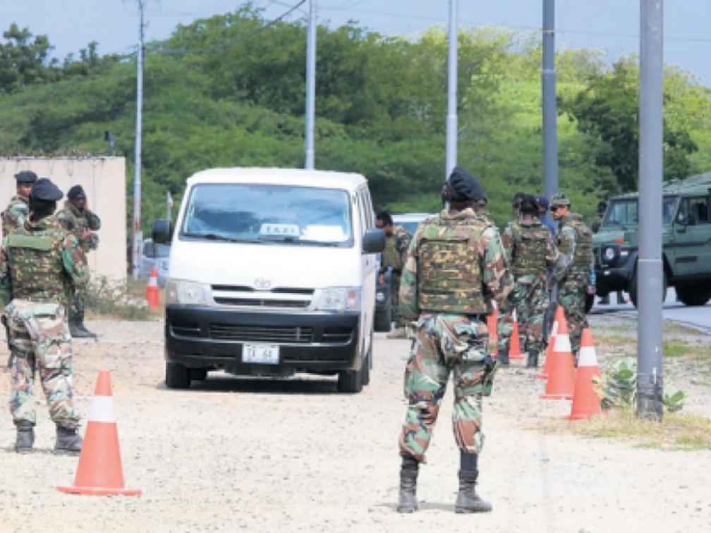 Samen met de Curaçaose militie. 65 auto’s werden doorzocht en 78 mensen gefouilleerd. Dat leverde drie scharen, twee messen, een sabel en een alarmpistool op.
