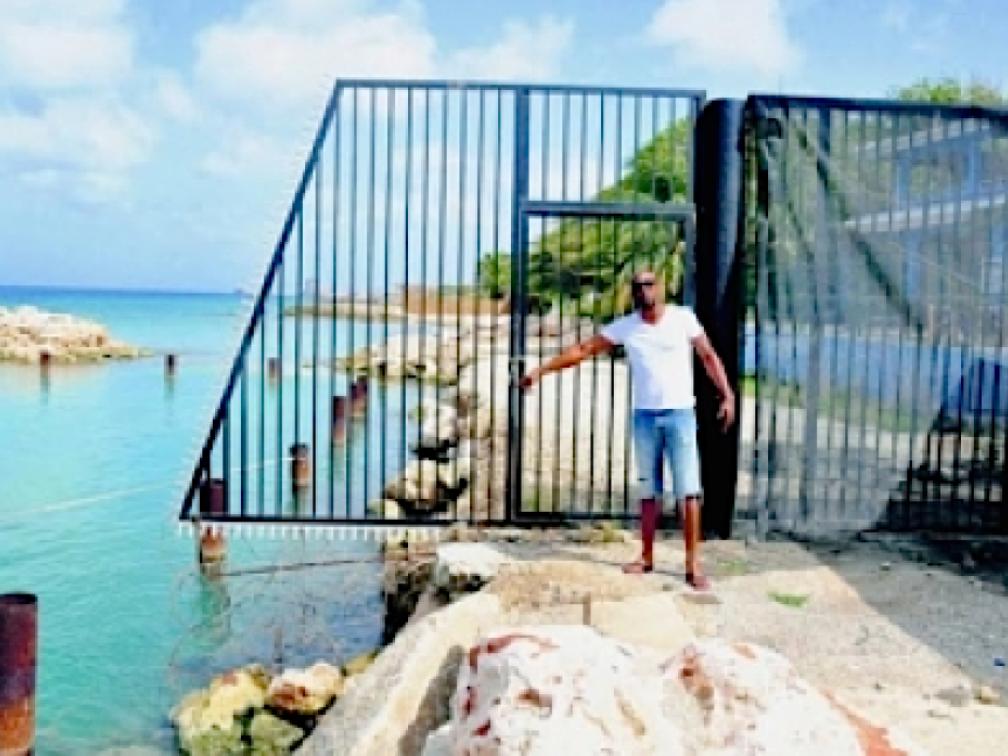 Het ‘publieke strand’ is van een hek voorzien en volgens de bewoners is er ook gedempt | Foto Amigoe