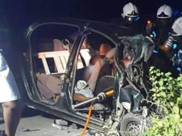 Door de enorme klap raakten de drie inzittenden van de personenauto ernstig gewond, het ambulancepersoneel kon hen niet meer redden.