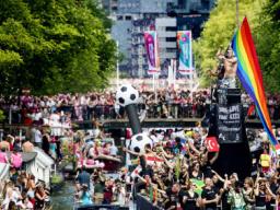 Het leek even niet door te gaan: een boot van het Overlegorgaan Caribisch Nederlanders (Ocan) tijdens de botenparade van de Amsterdam Gay Pride maar het is toch gelukt.