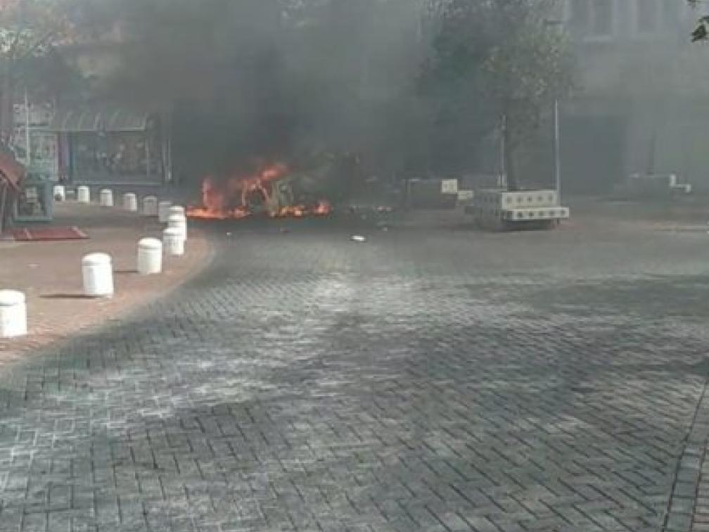 Inmiddels heeft de riotpolice het Fortiplein schoongeveegd. Daarna kwam het tot een confrontatie bij Plaza Nobo. Daarbij werd een politieauto omver gegooid en in brand gestoken en verschillende klikos gingen in vlammen op.