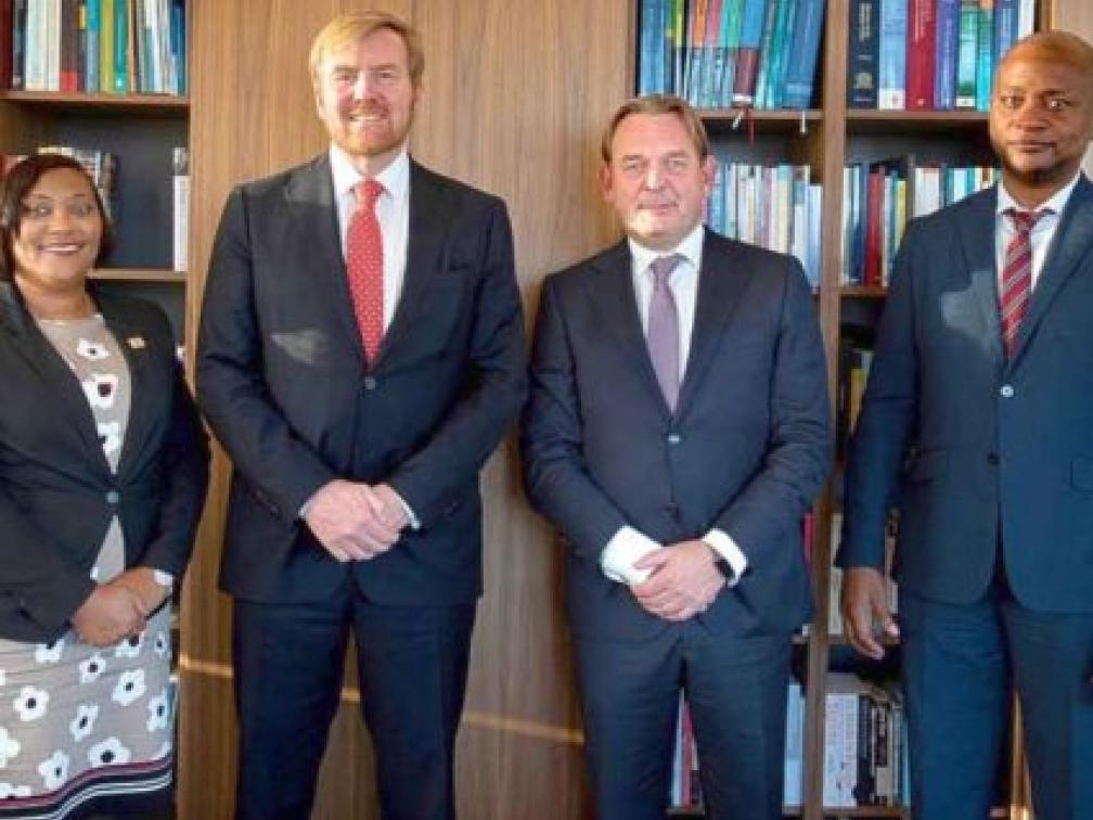 King Willem-Alexander (second from left) met with the three Ombudsmen in the Kingdom in October last year. At left is Gwendolien Mossel of St. Maarten, at right Keursly Concincion of Curaçao, and second from right Reinier van Zutphen of the Netherlands/Caribbean Netherlands. (Kick Smeets file photo)