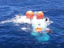 De helikopter van het type NH-90 lag na de crash op de kop in zee en zonk afgelopen nacht. Dat gebeurde nadat twee van de vier drijflichamen waren geknapt, die het toestel aanvankelijk boven water hielden.