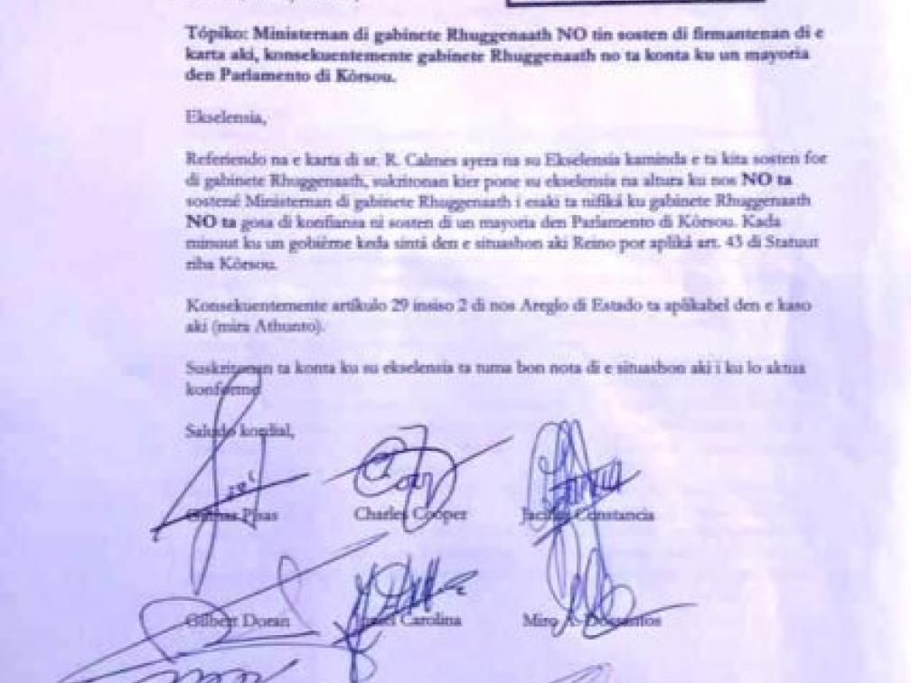 De brief is ondertekend door negen parlementariërs. Ze stellen dat de regering niet meer op een meerderheid kan rekenen en moet aftreden. De brief is ondertekend door de leden van de oppositiepartijen MFK, Kòrsou di Nos Tur, Movementu Progresivo en Pueblo Sobernao.