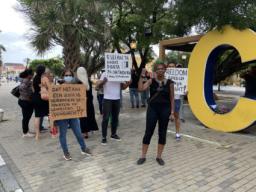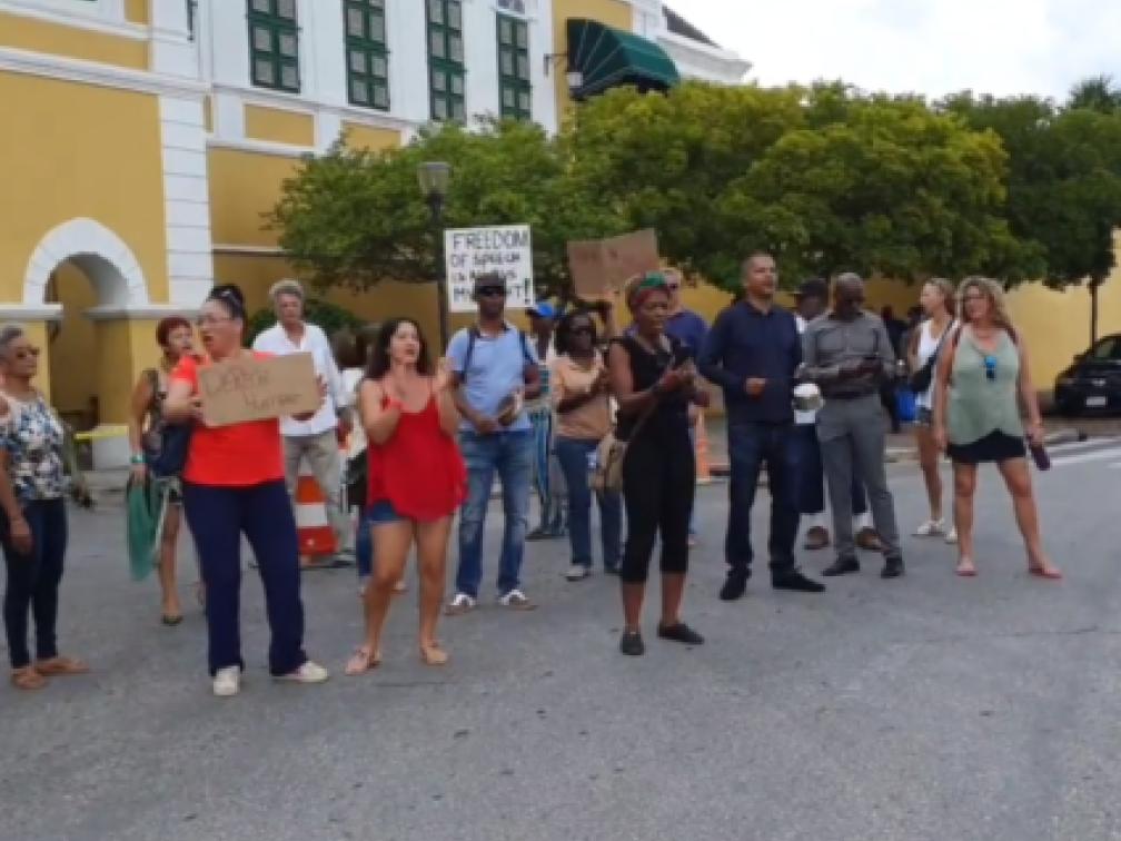 Zo’n twintig demonstranten protesteerden vanochtend in Punda tegen de aangekondigde Noodwet. De groep liep door de straten van de binnenstad om uit te komen bij de poorten van Forti.