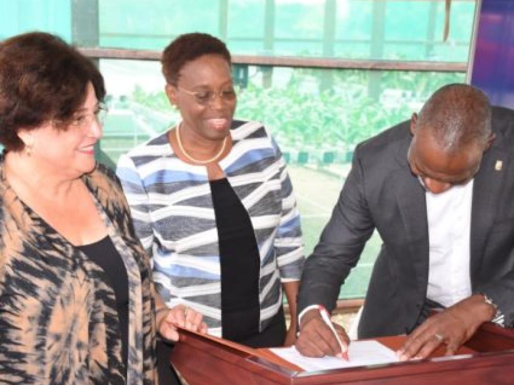 Tijdens de persconferentie benadrukte GMN-minister Camelia-Römer het belang van samenwerking tussen de ministeries voor een succesvolle ontwikkeling van de landbouw. Met een toename van de lokale productie is veel te winnen. ,,Nu geven we bijna 77 miljoen gulden uit aan de import van producten”, zegt Camelia-Römer.