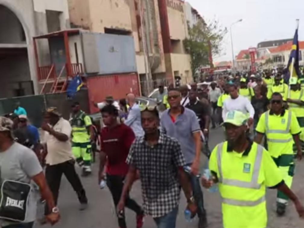 Willemstad - Een groep van ongeveer 50 Selikor-werknemers heeft woensdag zeven keer een ronde door Punda gelopen langs Fort Amsterdam. Met dit vreedzame protest roepen de manifestanten de regering op om nu wél te luisteren naar de noodkreet van de bevolking.