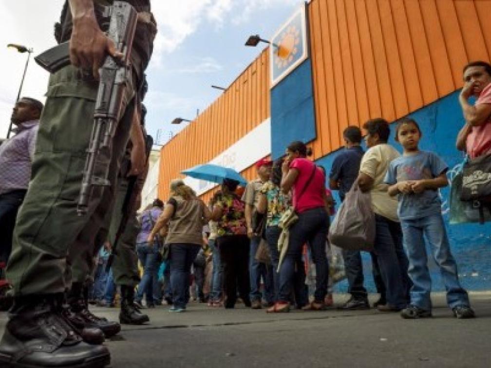 Shoppers queue outside the supermarket 'Dia a Dia' in Caracas, Venezuela, on Tuesday. The government took over stores of supermarket chain after alleging that it was hoarding food. According to many economists, government controls are making the economic crisis worse | Foto Miguel Gutierrez/EPA/Landov