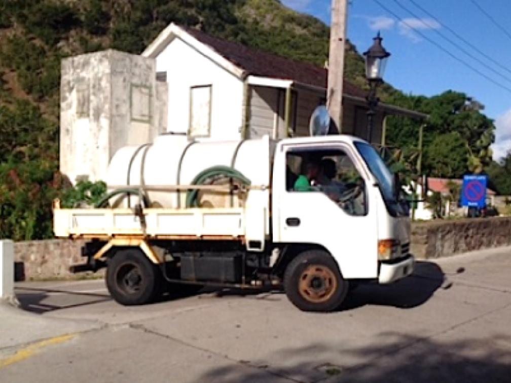 Een vrachtwagen brengt drinkwater rond op Saba | Foto Hazel Durand