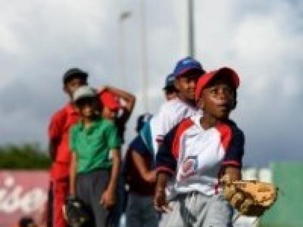 Deze week wordt de Curaçao Baseball Week gehouden met veel grote namen uit de honkbalwereld. In het Tio Daou Ball Park waren maandag ruim 200 kinderen voor twee clinics aanwezig. Op de eerste foto de begroeting van de kinderen door de honkbalsterren, op de andere foto de honderd deelnemers aan de Minor League Kids Clinic. De Curaçao Baseball Week wordt morgen afgesloten.