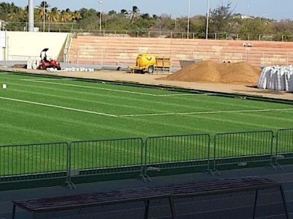 De nieuwe grasmat in het SDK stadion is klaar. De mat werd vernieuwd nadat tijdens de WK-kwalificatiewedstrijd tegen Montserrat bleek dat de oude mat niet meer goed was.