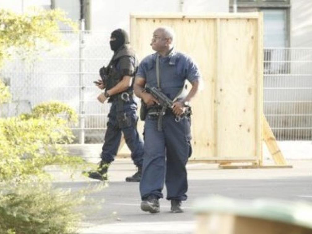 De rechtbank wordt tijdens het proces extreem zwaar bewaakt.